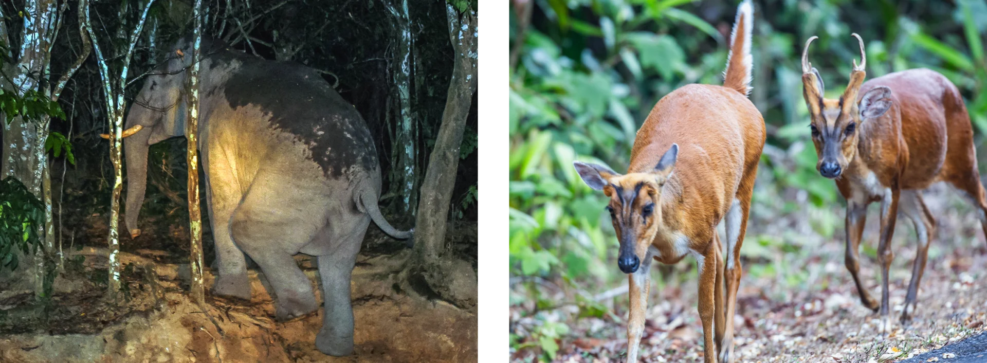 Asian Elephant, Indochinese Tiger, Banteng, Wild Asian Water Buffalo, Dhole, Asian Tapir, Grey Heron, Purple Heron, Black-headed Ibis, Clouded Leopard, Pileated Gibbon, White-handed Gibbon, Spectacled Langur, Long-tailed Macaque, Elds Deer, Hog Deer, Siamese fireback, Lesser Whistling Duck, Garganey, Northern Shoveler, White-winged Duck, Baers Pochard, Tufted Duck, Green Peafowl, Little Grebe, White-breasted Waterhen, Kentish Plover, Little-ringed Plover, Spot-billed Duck, Cotton-pygmy goose.