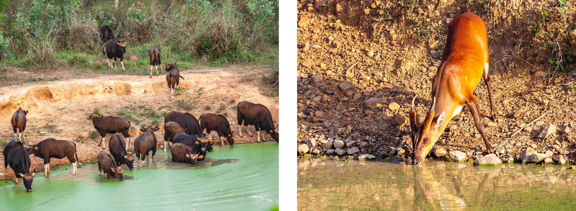 Gaur, Leopard, Sambar Deer, Smooth-coated Otter, Great Hornbill, Wreathed Hornbill, Chinese serow, Sun Bear