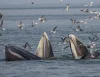 "Meet the majestic Bryde's Whale, a graceful baleen whale that calls the Gulf of Thailand home. This awe-inspiring species can be spotted year-round, with approximately 60 of these magnificent creatures frequently observed gracefully feasting on anchovies. Bryde's Whale is not only a symbol of the Gulf's natural riches but also holds a special place among the 19 protected wildlife species under Thai law. Witness their breathtaking presence in this aquatic paradise."